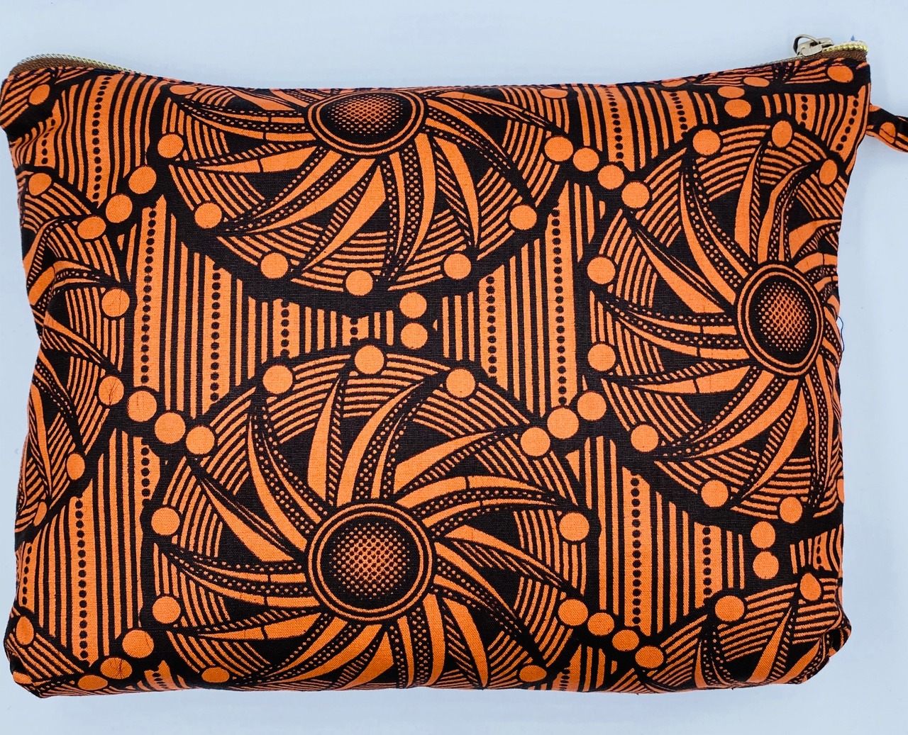 2020年2月にギニアで製作したアフリカンプリント生地製ポーチ。