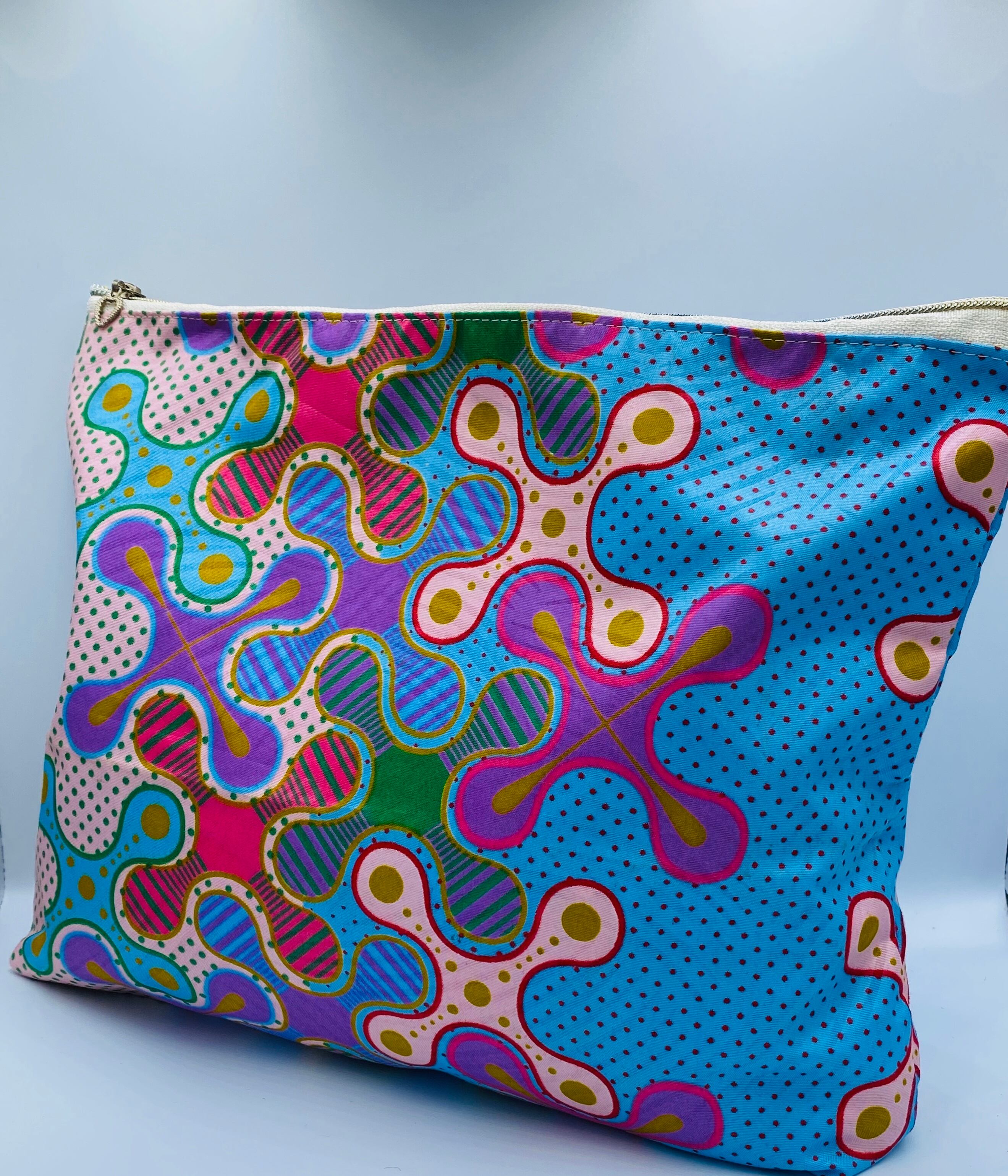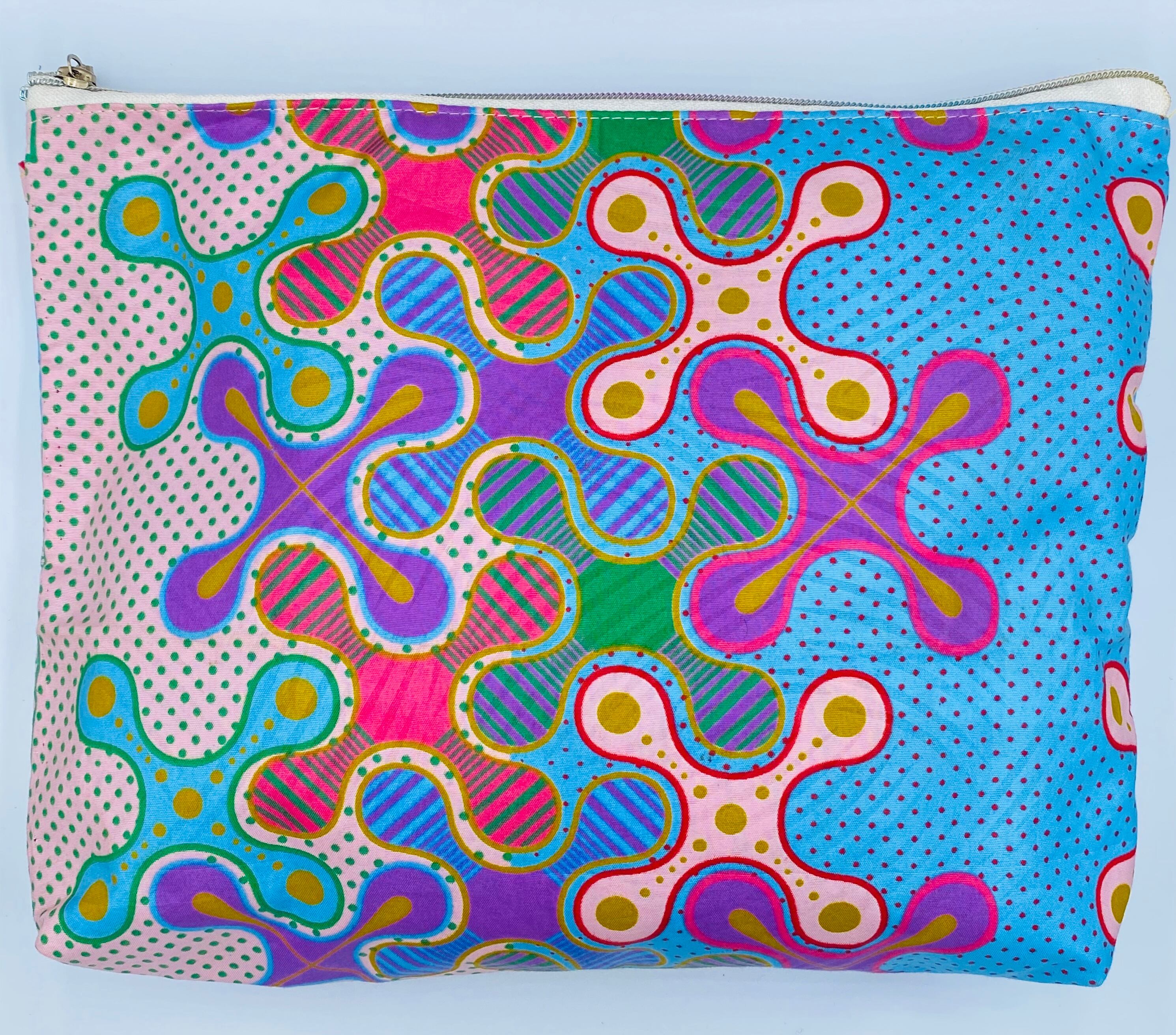 2020年2月にギニアで製作したアフリカンプリント生地製ポーチ。