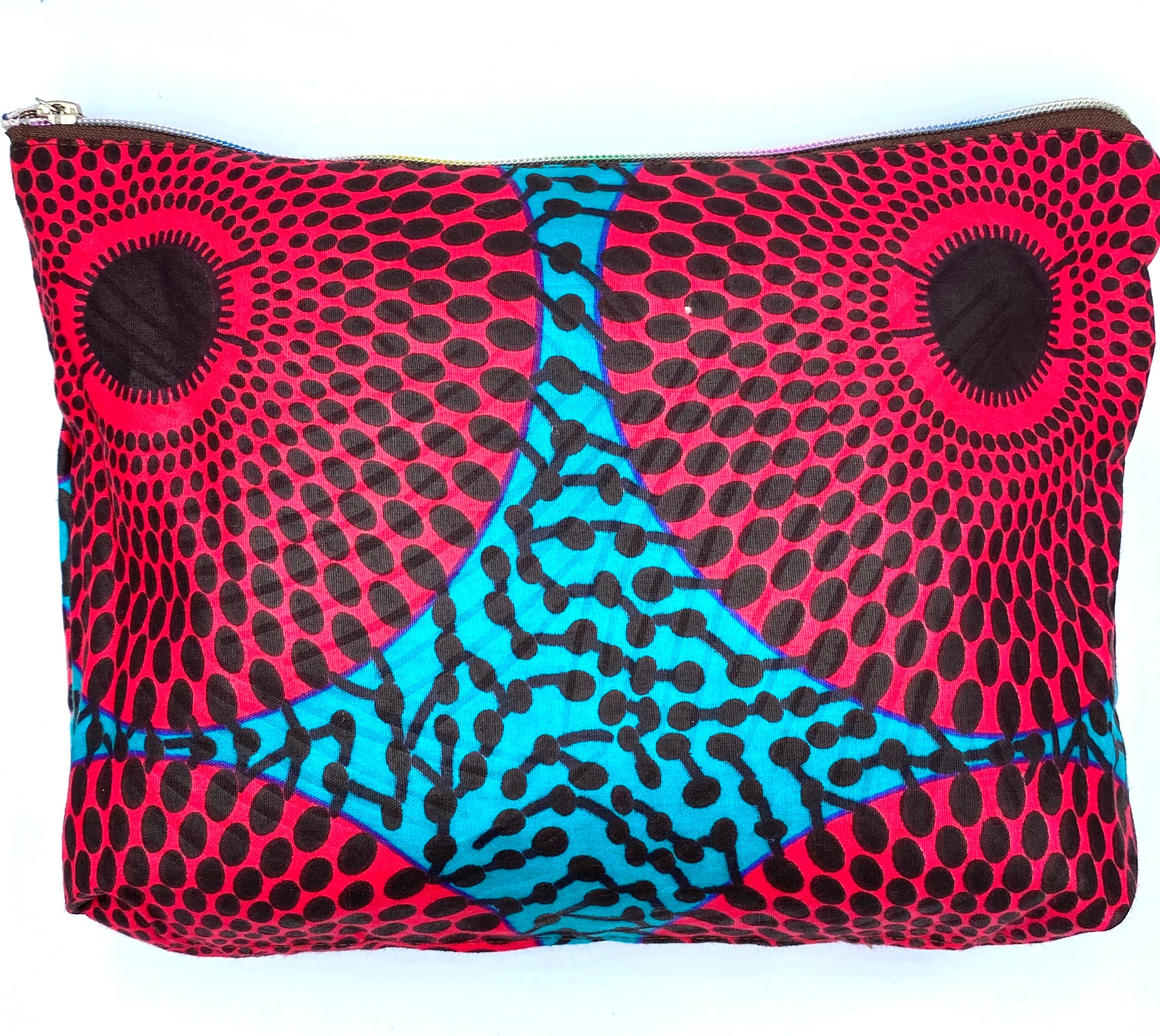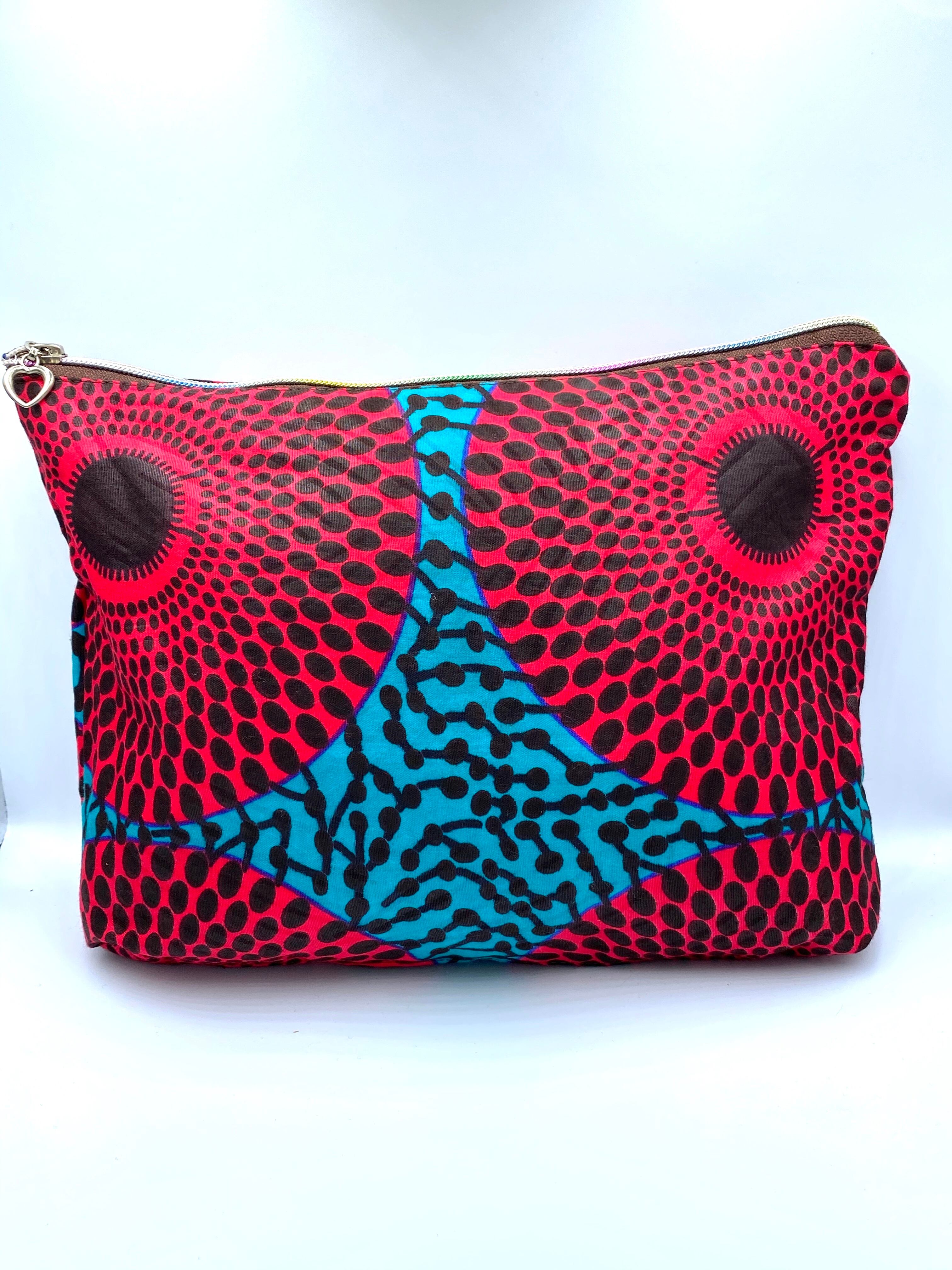 2020年2月にギニアで製作したアフリカンプリント生地製ポーチ。