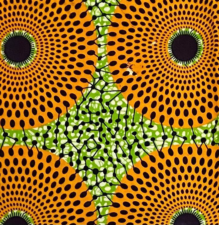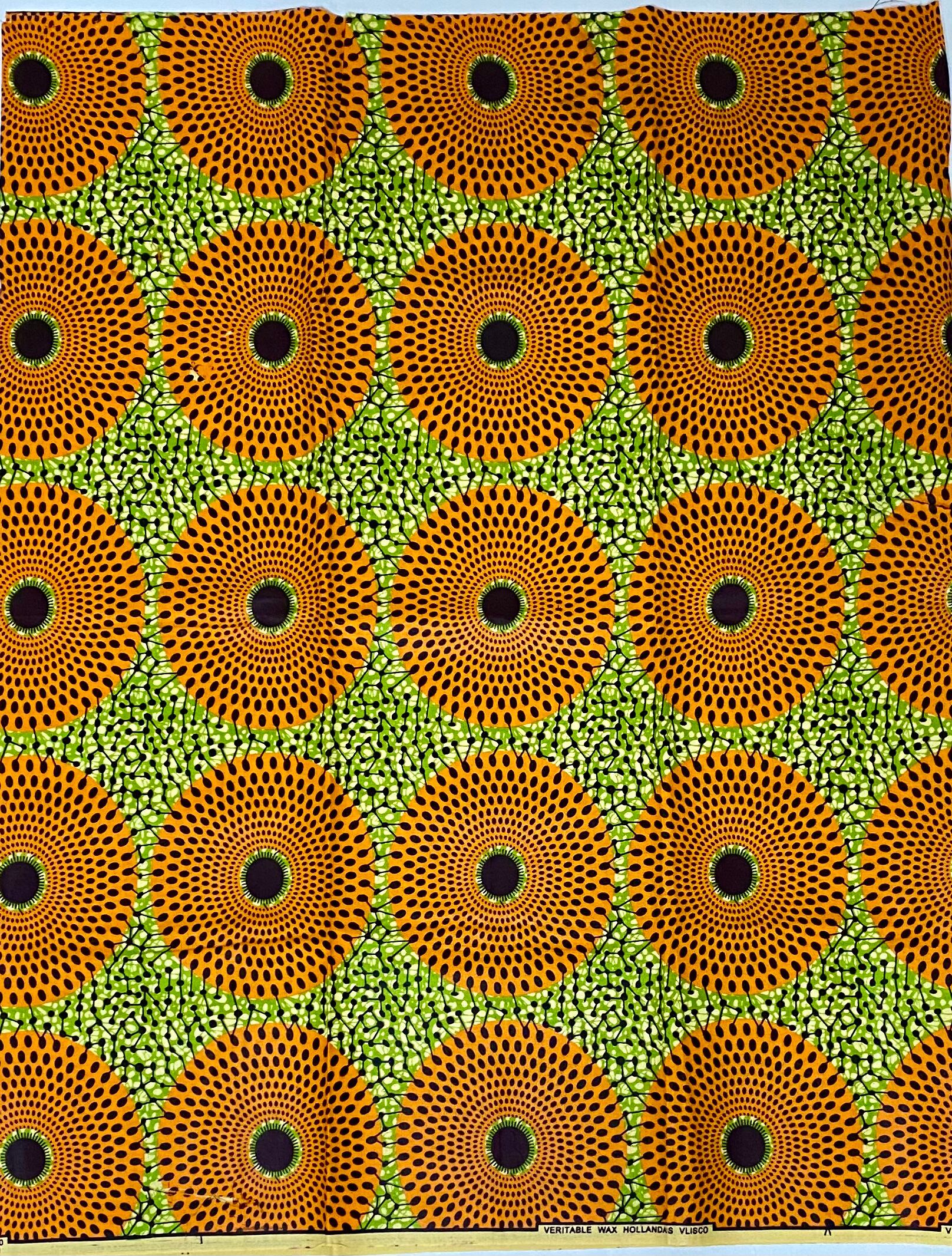 【生地】アフリカンプリント〜ビッグサークル(オレンジ×グリーン)